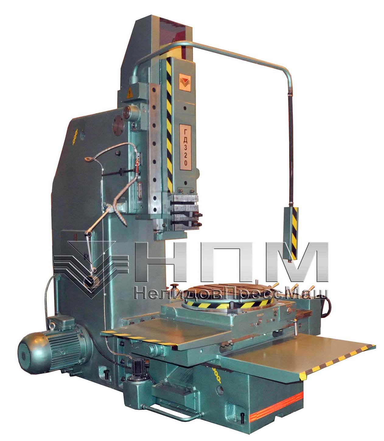 Гідрофицированный долбежный верстат моделі ГД320 (ГД-320) предназначен для изготовления шпоночных пазов, шлицев і канавок на фасонных і плоских поверхностях, для долбления плоских і фасонных поверхностей, вырезов, канавок в цилиндрических і конических отверстиях з углом конуса при вершине 20° і долбления наклонных поверхностей под углом до 10°.