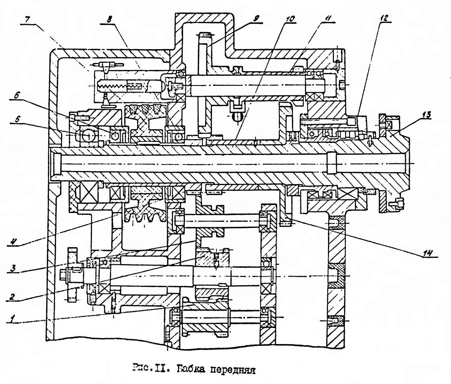 Часть маслау пройдя через смазываемые частини коробки подач, собирается на дне корпуса і по сливному маслопроводу 13 через сливной фильтр возвращается в масляный резервуар.