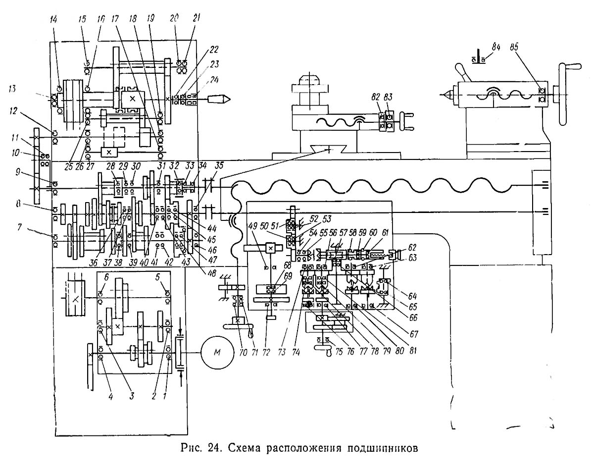 Схема установки підшибників токарно-гвинторізного на станке ИТ-1М. Скачать в увеличенном масштабе