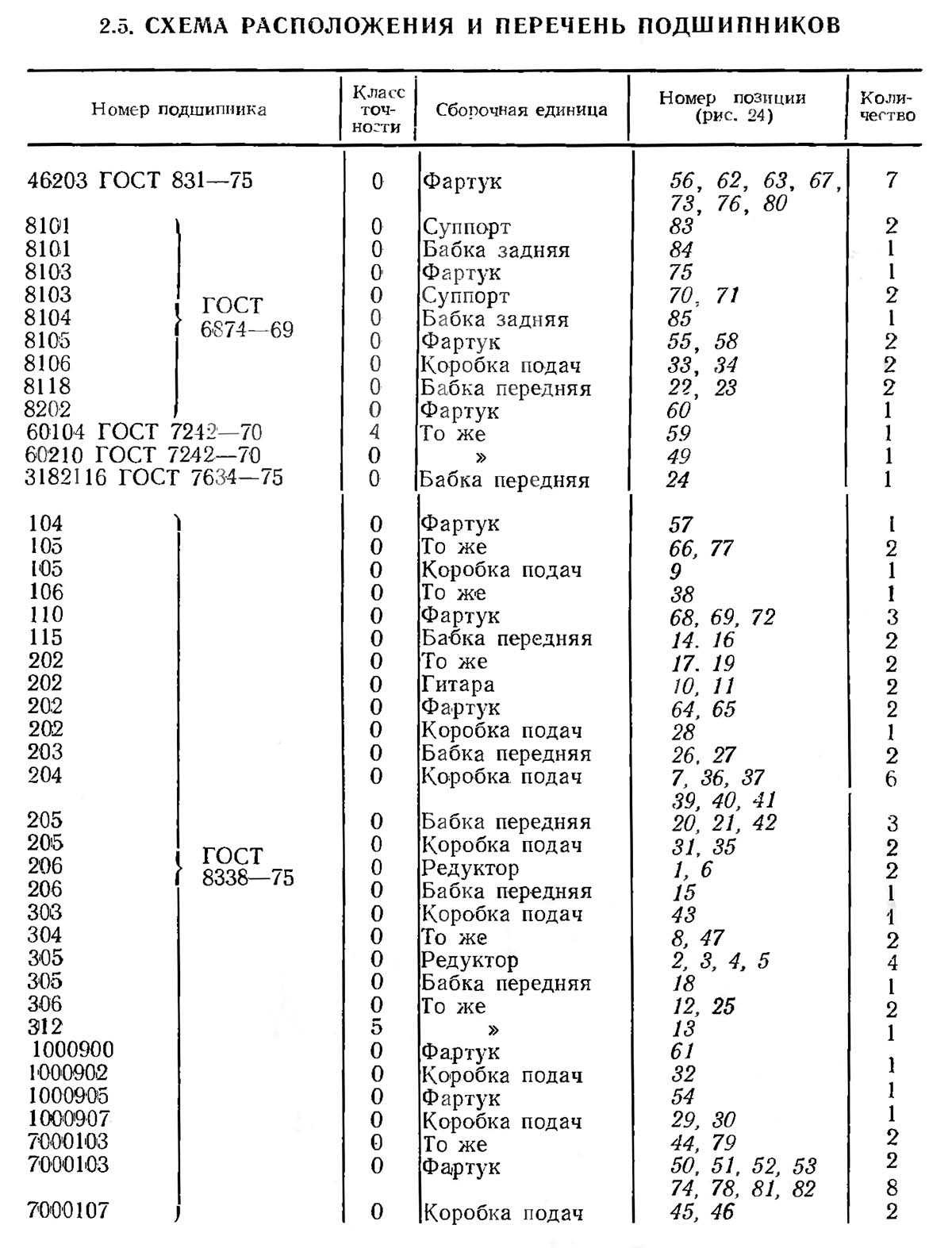 Список підшибників токарно-гвинторізного верстата ИТ-1м