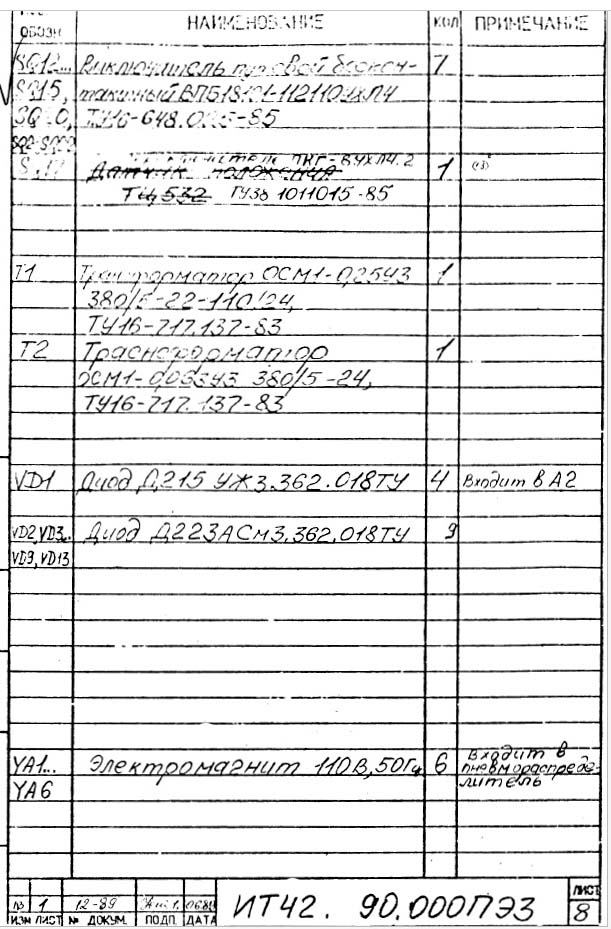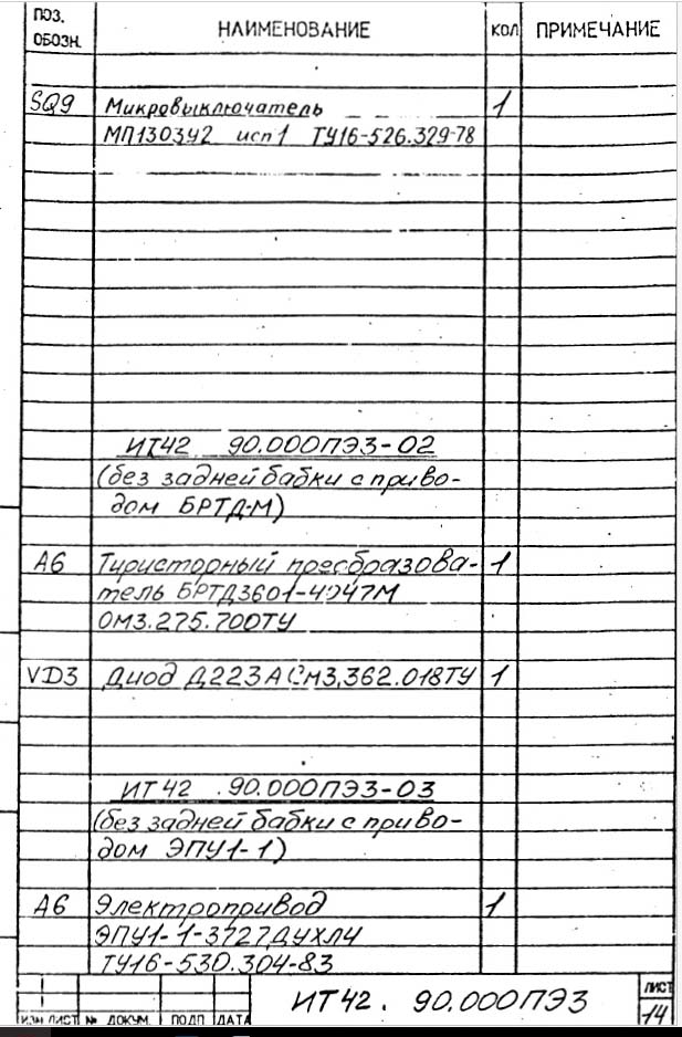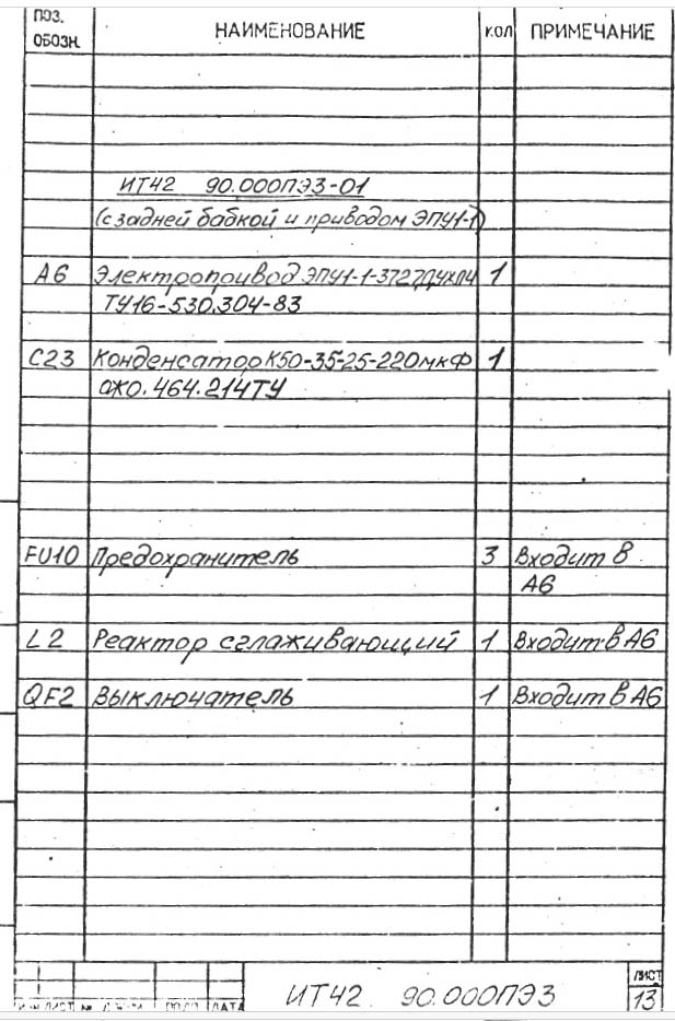 Список елементів токарного верстата ИТ-42. Скачать в увеличенном масштабе