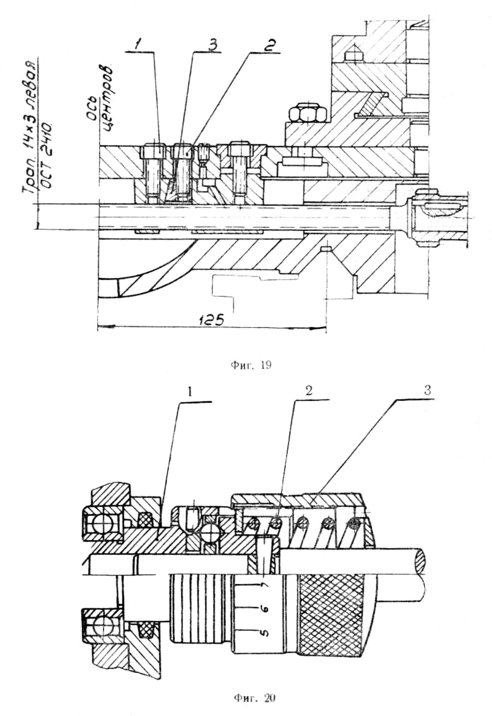 Регулювання предохранительной муфты коробки подач (см. фиг. 20)