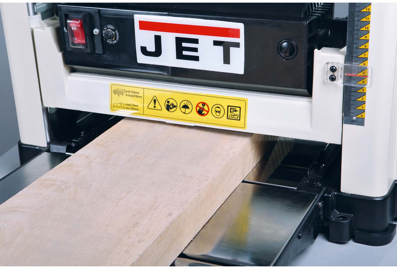 Легкий і компактный рейсмусовый верстат Jet JWP-12 предназначен для индивидуального использования в столярных мастерских і «на выезде» в условиях стройки. Благодаря коллекторному мотору он весит всего 30 кг, обладая при етом мощностью 1,8 кВт. Двигатели етого типа требовательны к соблюдению температурного режима, поетому JWP-12 оснащен датчиком перегрева, отключающим питание, когда нужен перерыв на охолодження.