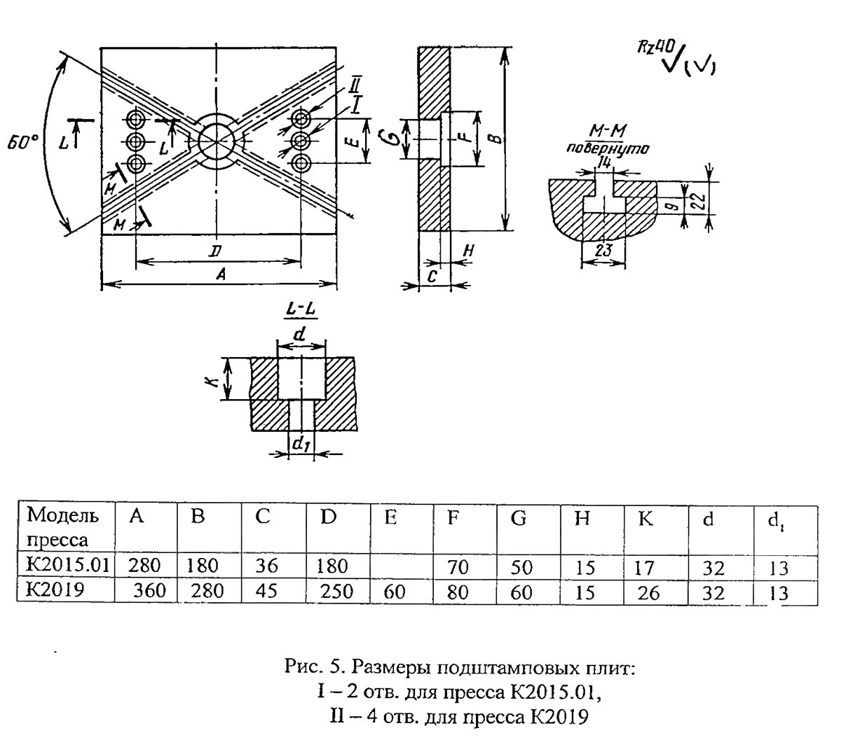 К2019 Розміри подштамповой плиты кривошипного пресса