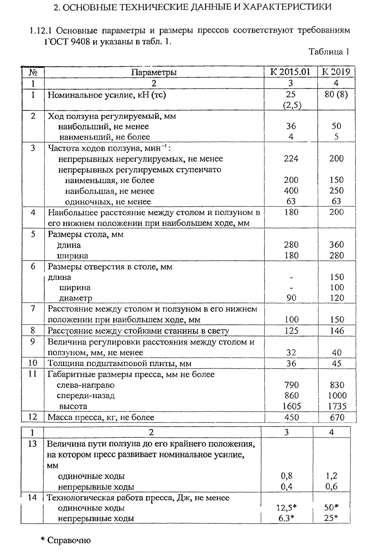 Пресс К2019 изготовляется з основними параметрами по ГОСТ 9408—77.