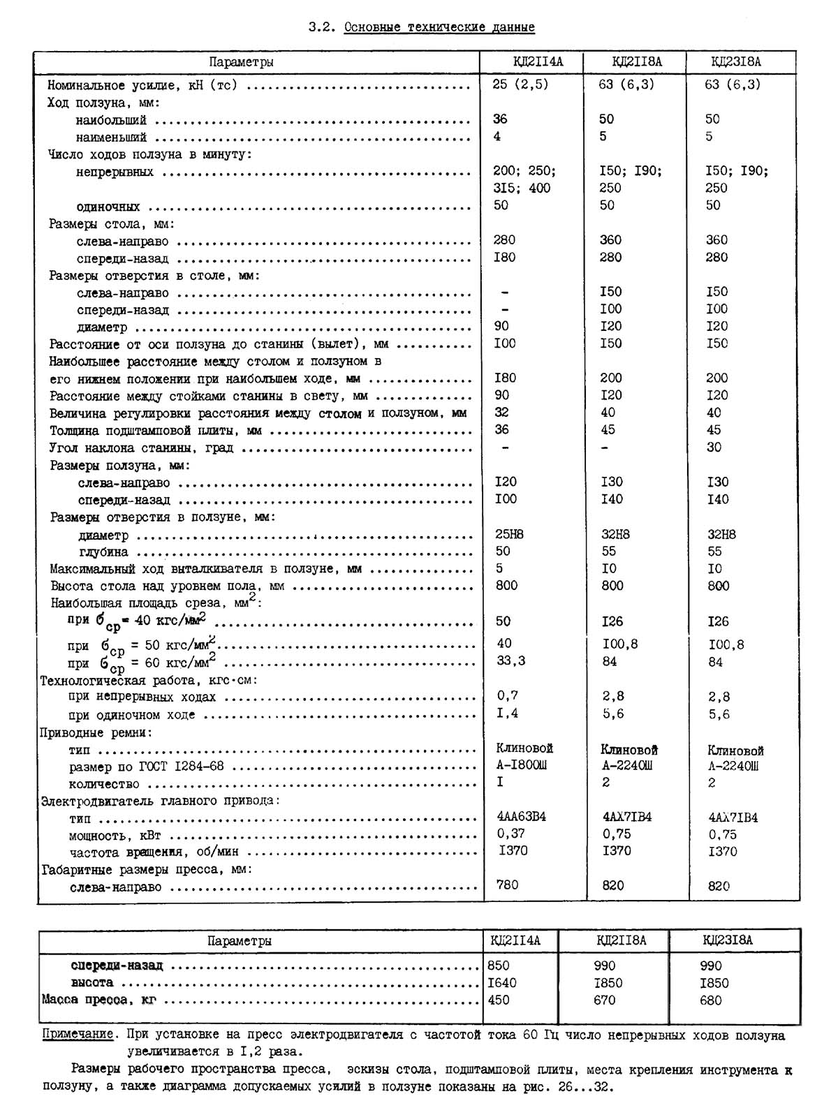 Технічні характеристики пресса КД2114
