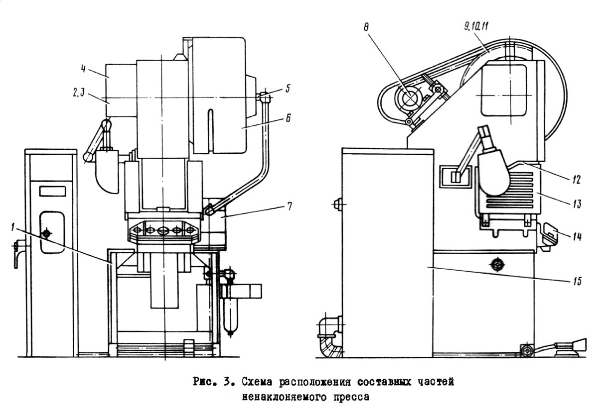 Розташування основних вузлів однокривошипного пресса КД2114