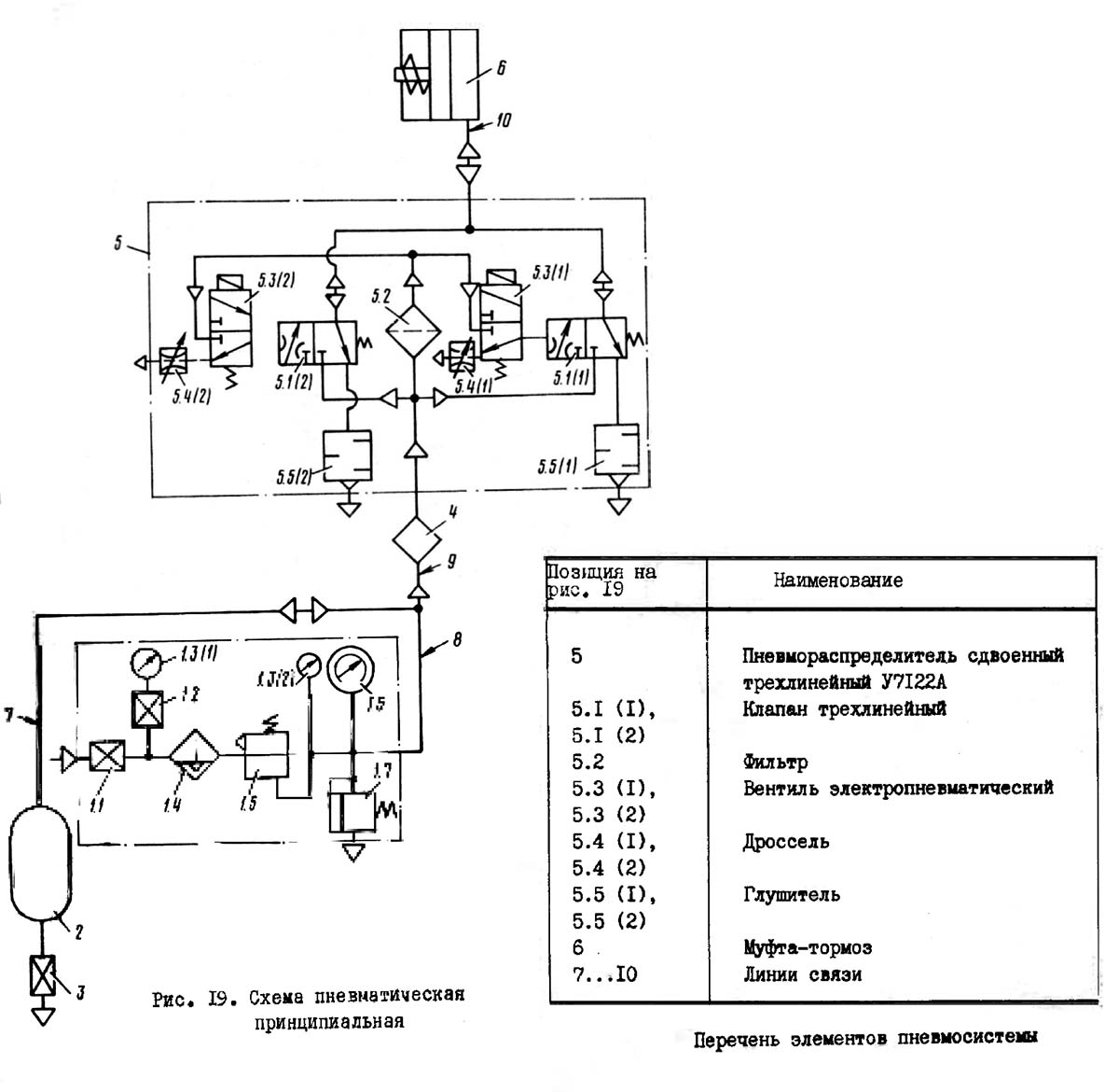 Пневматическая схема однокривошипного пресса КД2118. Дивитись у збільшеному масштабі