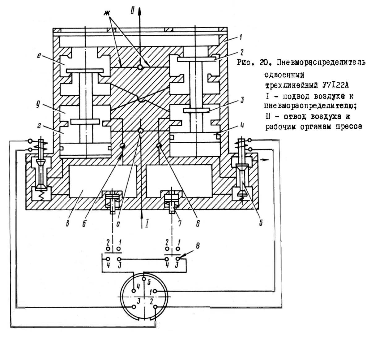 Пневмораспределитель сдвоенный трехлинейный У7122А однокривошипного пресса КД2118 открытого ненаклоняемого пресса