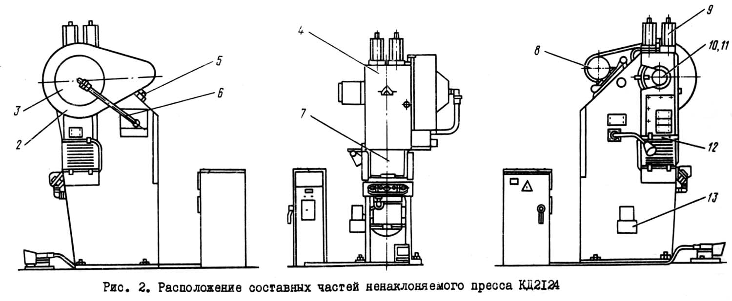 КД2324 Розташування складових частин однокривошипного наклоняемого пресса КД2324