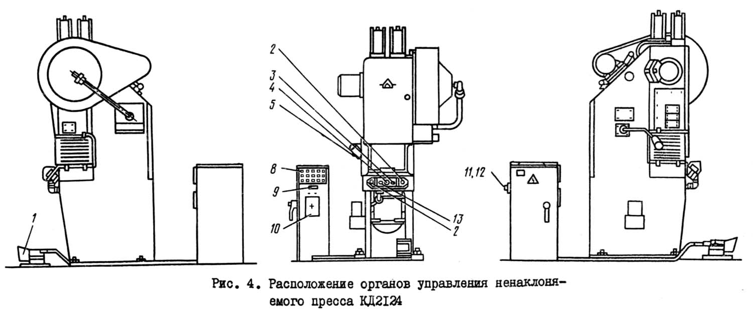 Розташування органів керування однокривошипным прессом КД2324. Дивитись у збільшеному масштабі