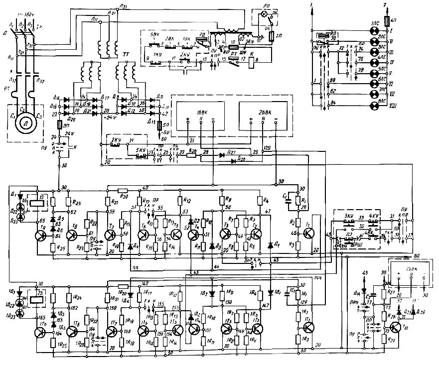 Схема електрична однокривошипного пресса КД2324. Дивитись у збільшеному масштабі
