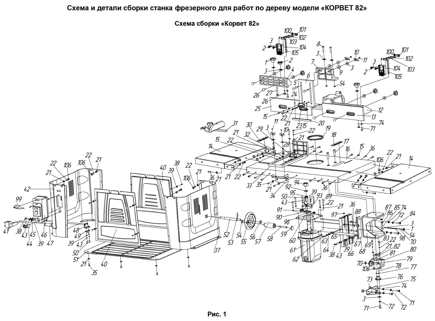 Детали сборки верстата фрезерного Корвет-82 для работ по дереву