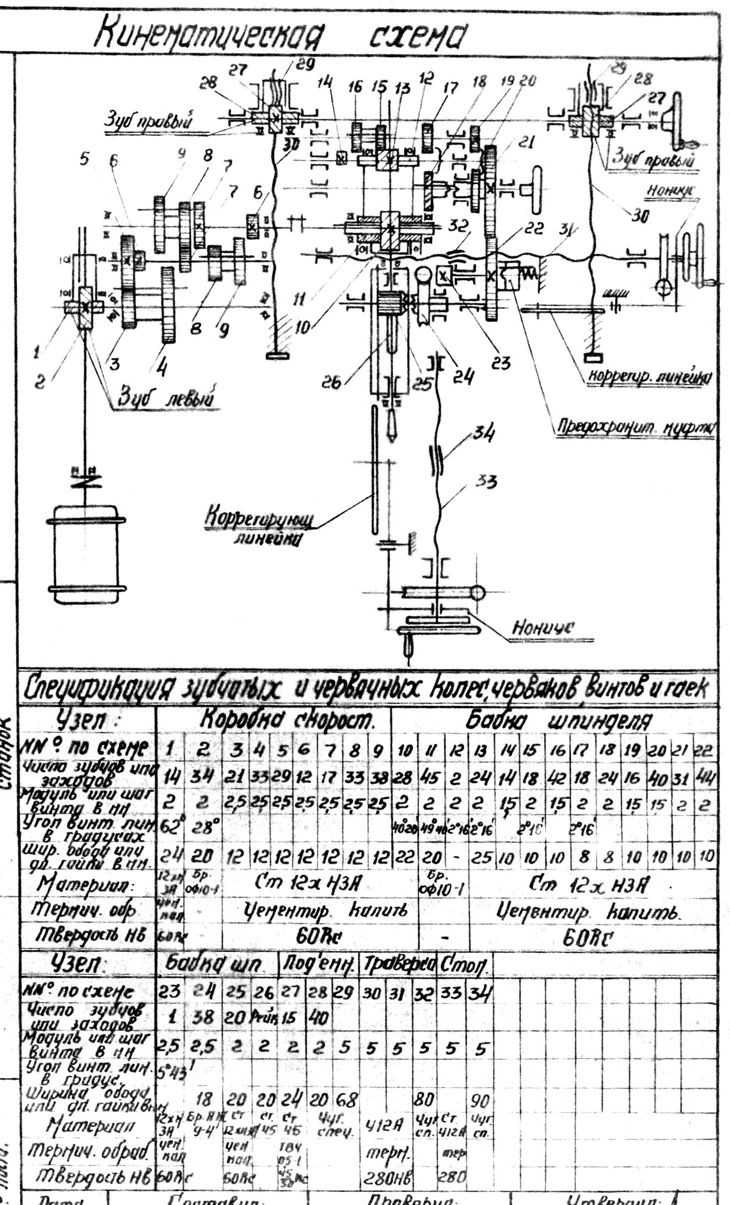 Кінематична схема координатно-розточувального верстата КР-450. Завантажити у збільшеному масштабі