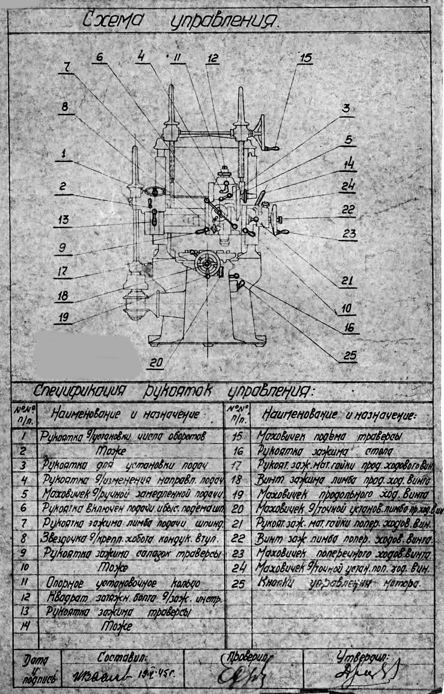 Розташування органів керування верстатом КР-450. Завантажити у збільшеному масштабі