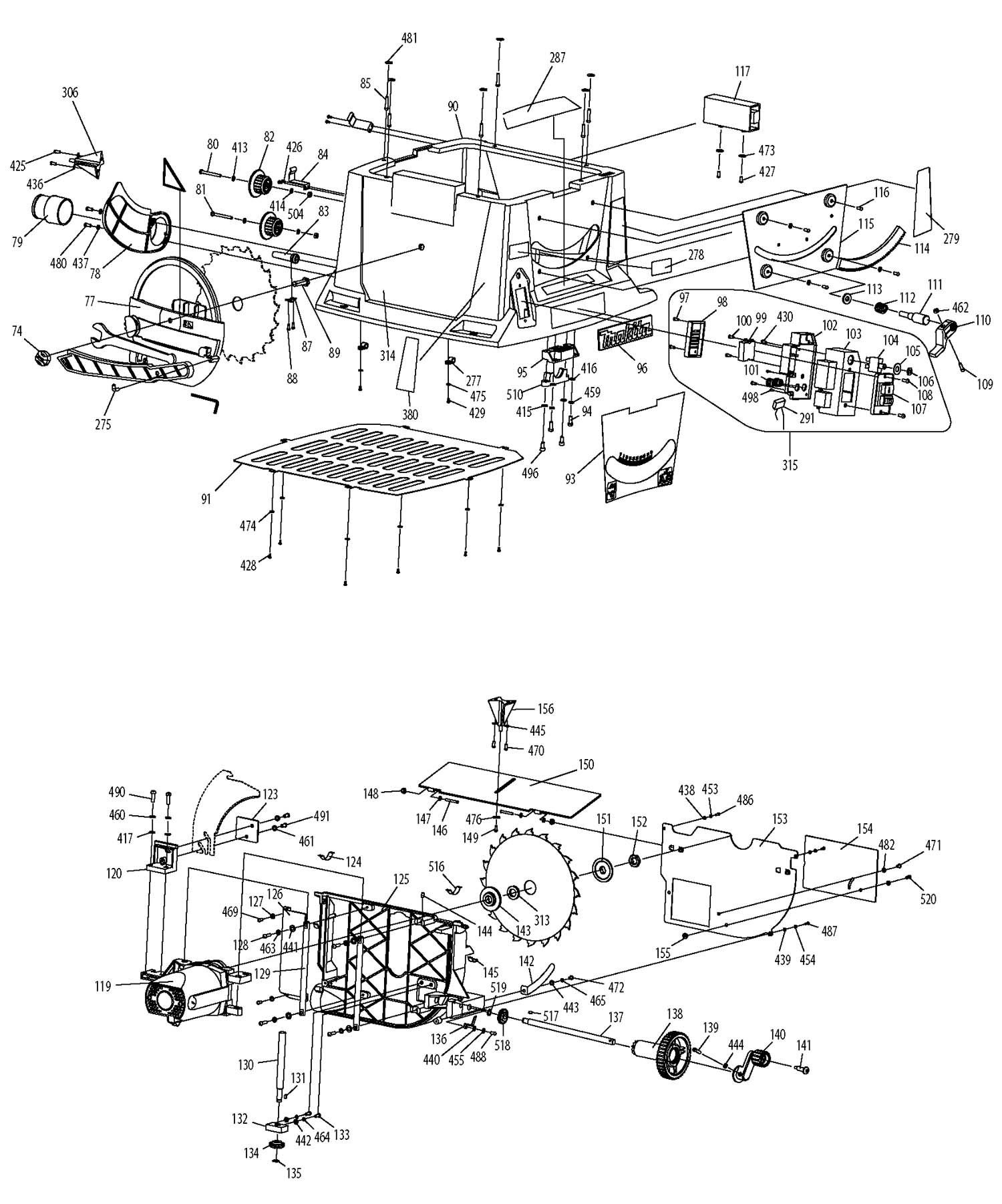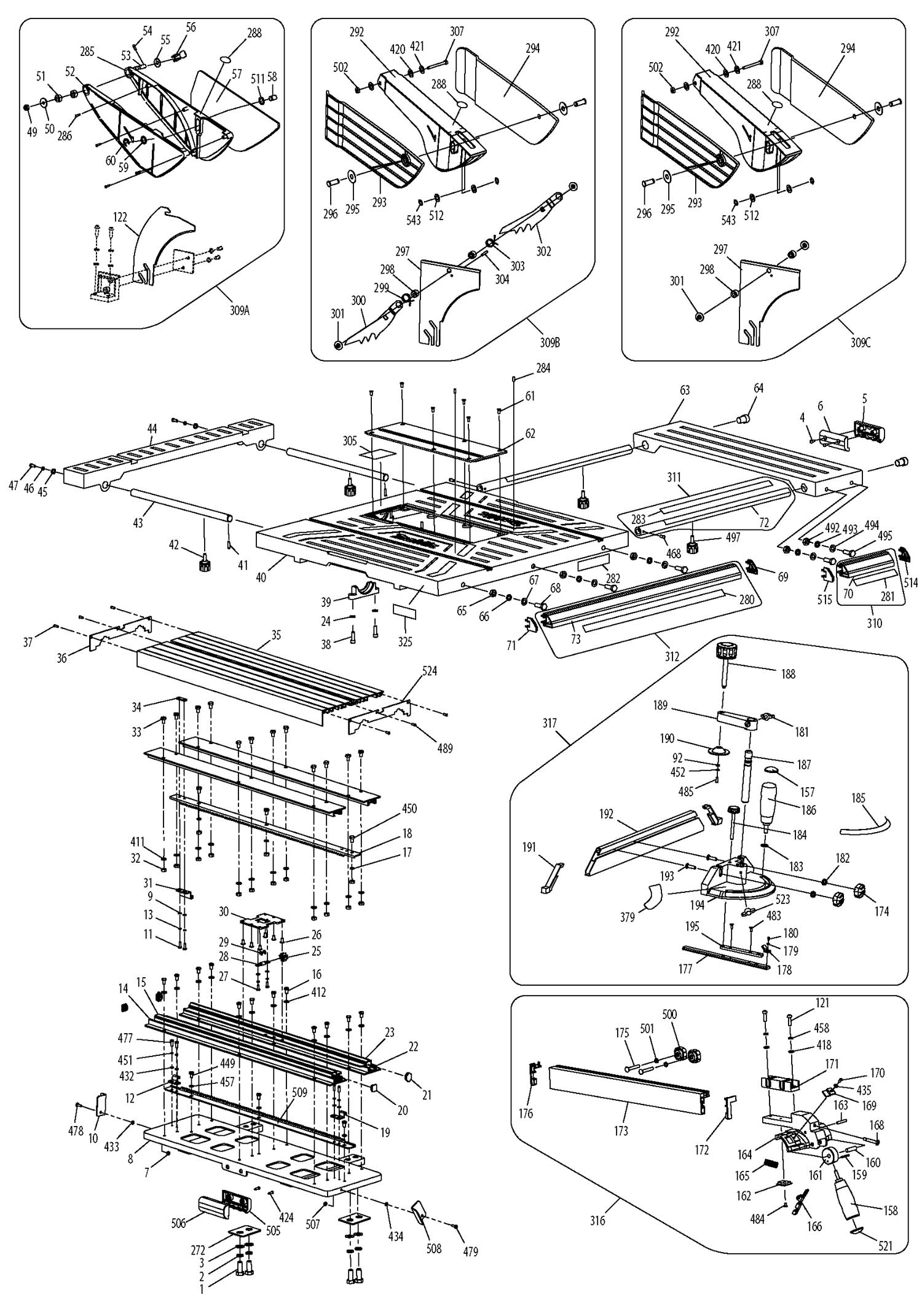 Makita MLT100 Пила циркулярная настольная. Схема і детали сборки. Дивитись у збільшеному масштабі