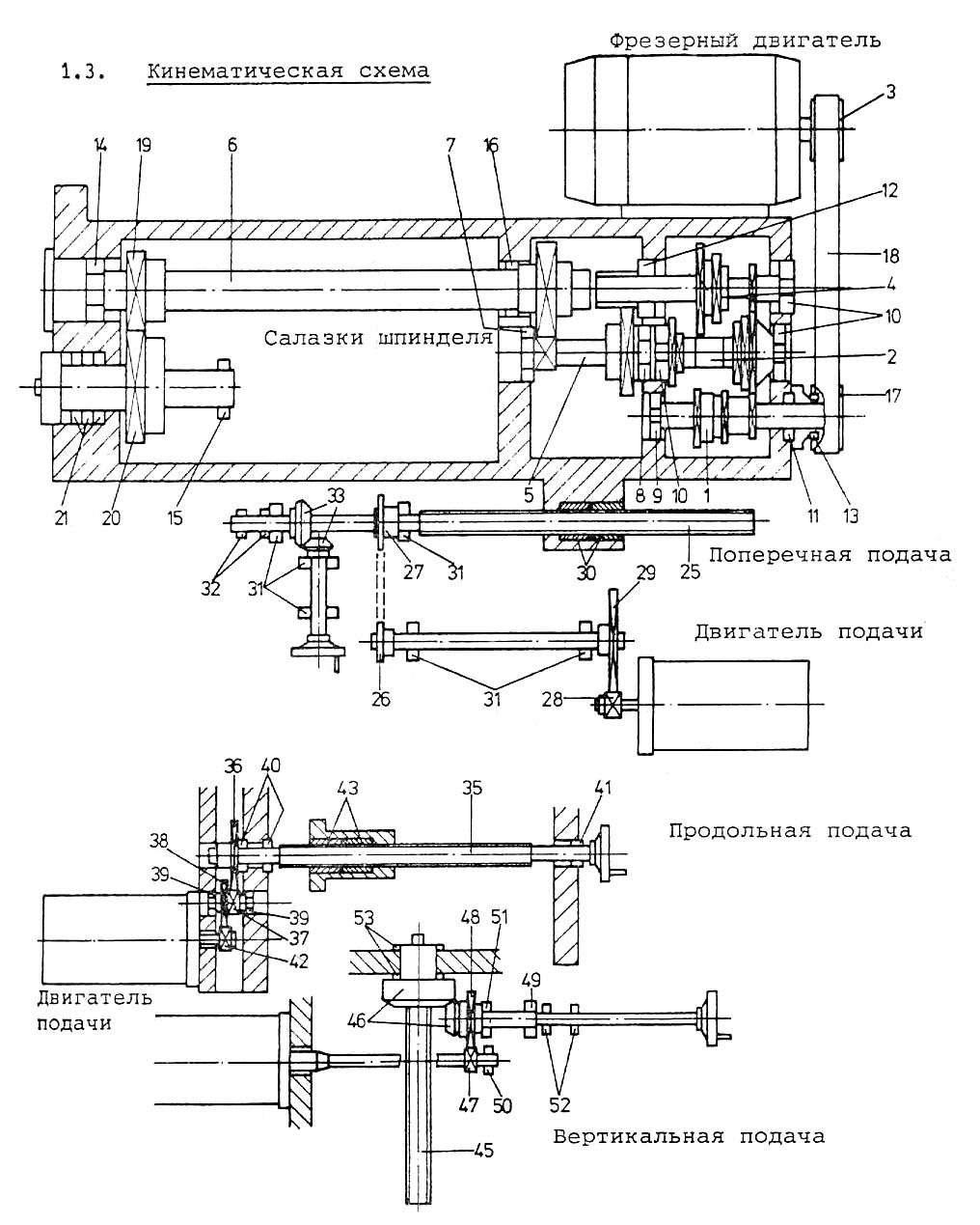 Кінематична схема універсального фрезерного верстата Mikron WF3