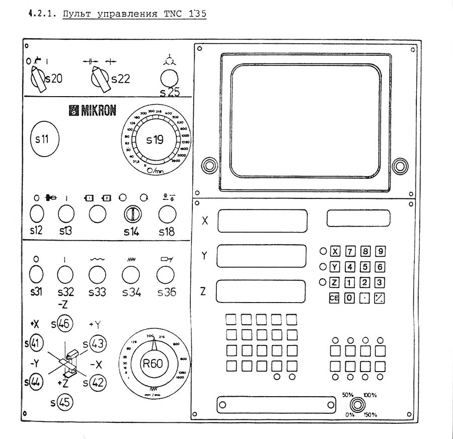 Пульт керування фрезерного верстата Mikron WF3. Увеличенный чертеж