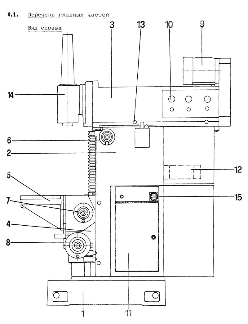 Для обробки пазов і шпоночных пазов была предусмотрена специальная головка (деталь 14.01). У него был ход, регулируемый от 0 до 80 мм, і семь швидкостей ходу в диапазоне от 28 до 224 в минуту.