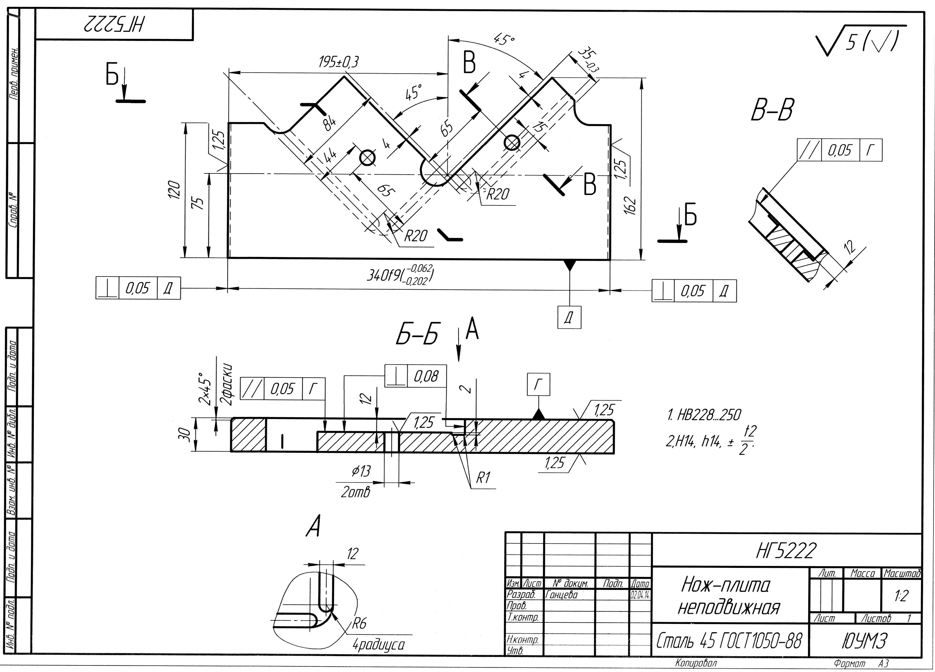 Нож-плита нерухома для нг5222