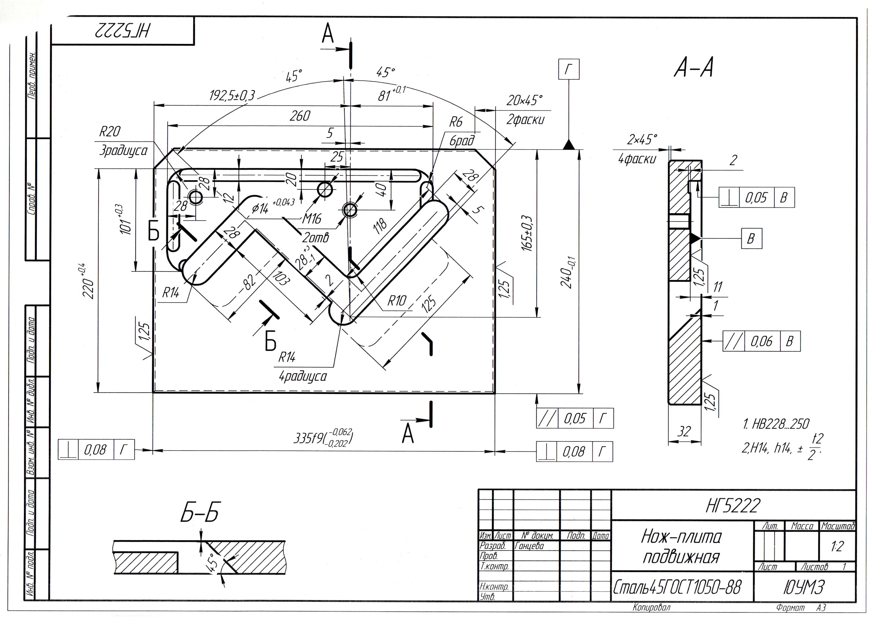 Нож-плита подвижная для нг5222. Дивитись у збільшеному масштабі