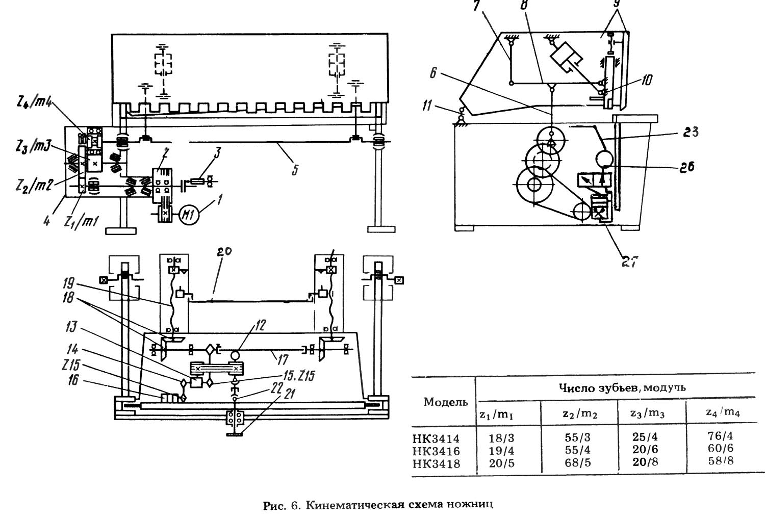 Кінематична схема гильотинных ножниц НК3418. Дивитись у збільшеному масштабі
