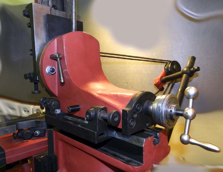 Поворот та вертикальний хід столу та шпиндельної бабки здійснюються вручну за допомогою важелів.