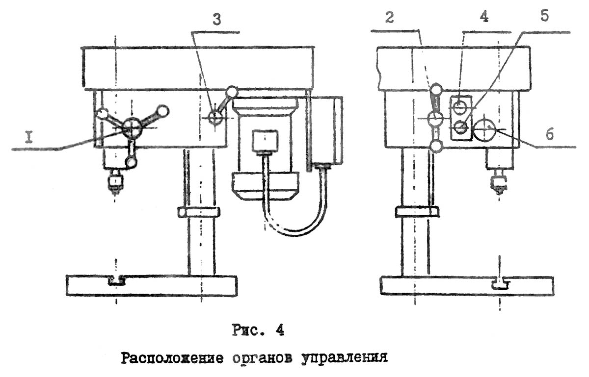 Розташування органів керування свердлильним верстатом НС-2
