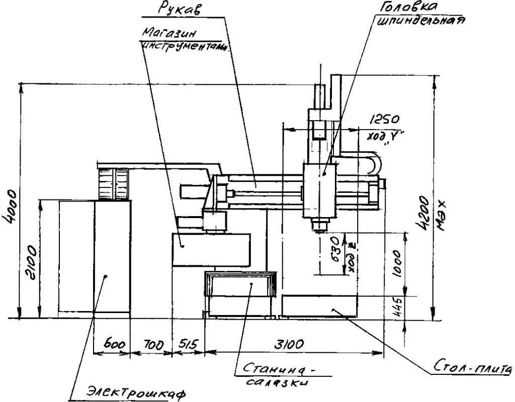 Фото координатно-свердлильного верстата ОС1000 МФ4. Збільшене креслення