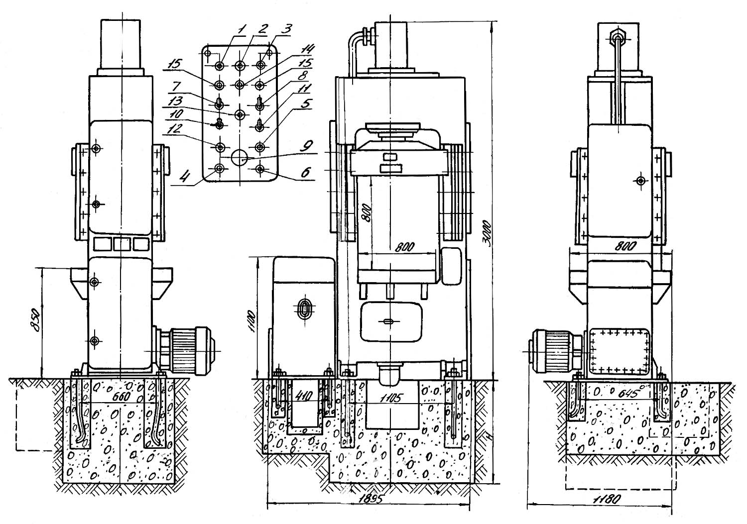 Горизонтальная массивная плита з центральным отверстием і Т-образными пазами является столом пресса.