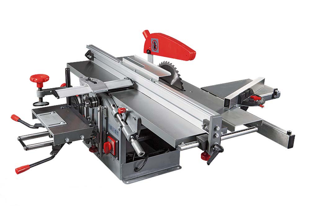 Пильный стол, конструктивно объединен з кареткой і регулируется по высоте, что позволяет устанавливать нужную глубину распиловки. Угловой упор каретки снабжен точной транспортирной шкалой. Распускать вдоль длинные заготовки можно по параллельному упору, при етом используется і ширина фуговальных столов. Верстат оборудован мощным надежным двигателем, который не перегревается даже при продолжительной интенсивной работе.
