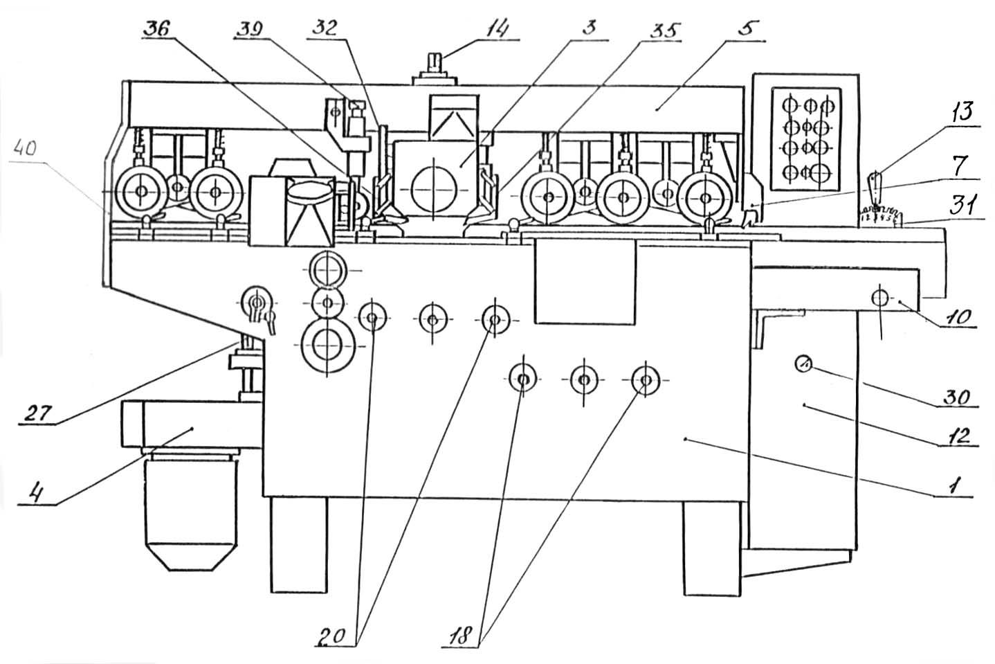 Розташування органів керування четырехсторонним строгальным верстатом С16-42