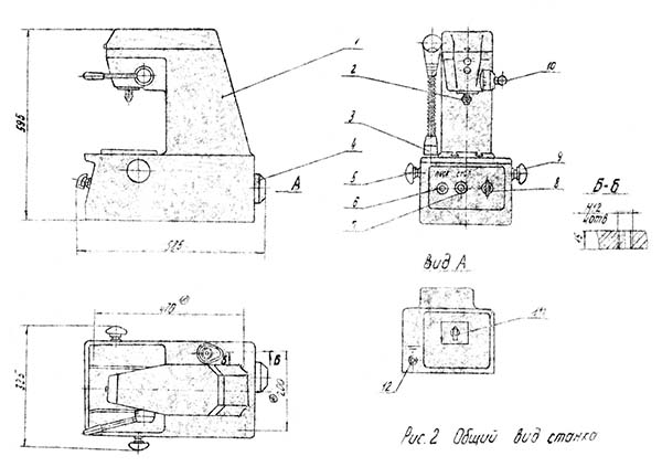 С-30 Розташування основних вузлів сверлильного настільного верстата. Дивитись у збільшеному масштабі