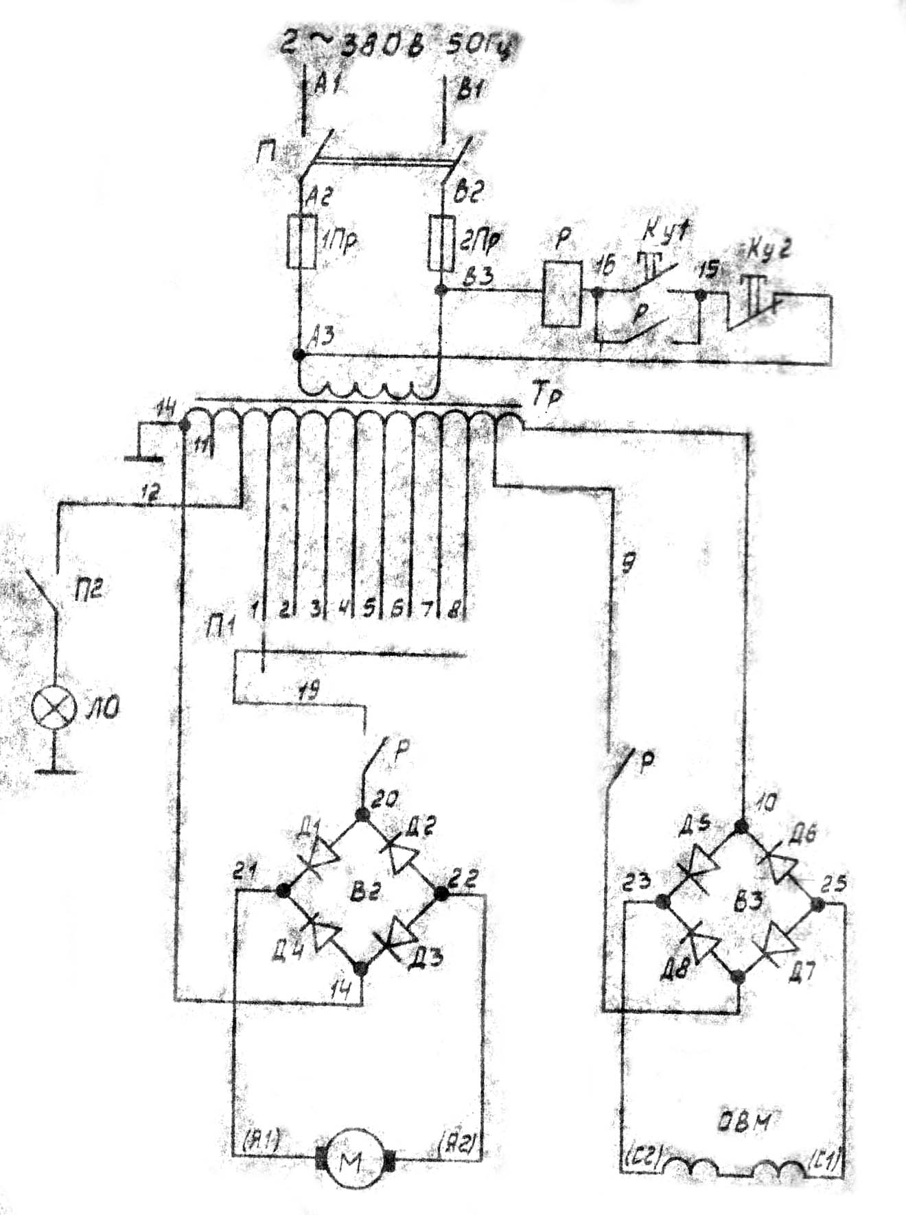 Електрична схема сверлильного настільного верстата С-30. Дивитись у збільшеному масштабі