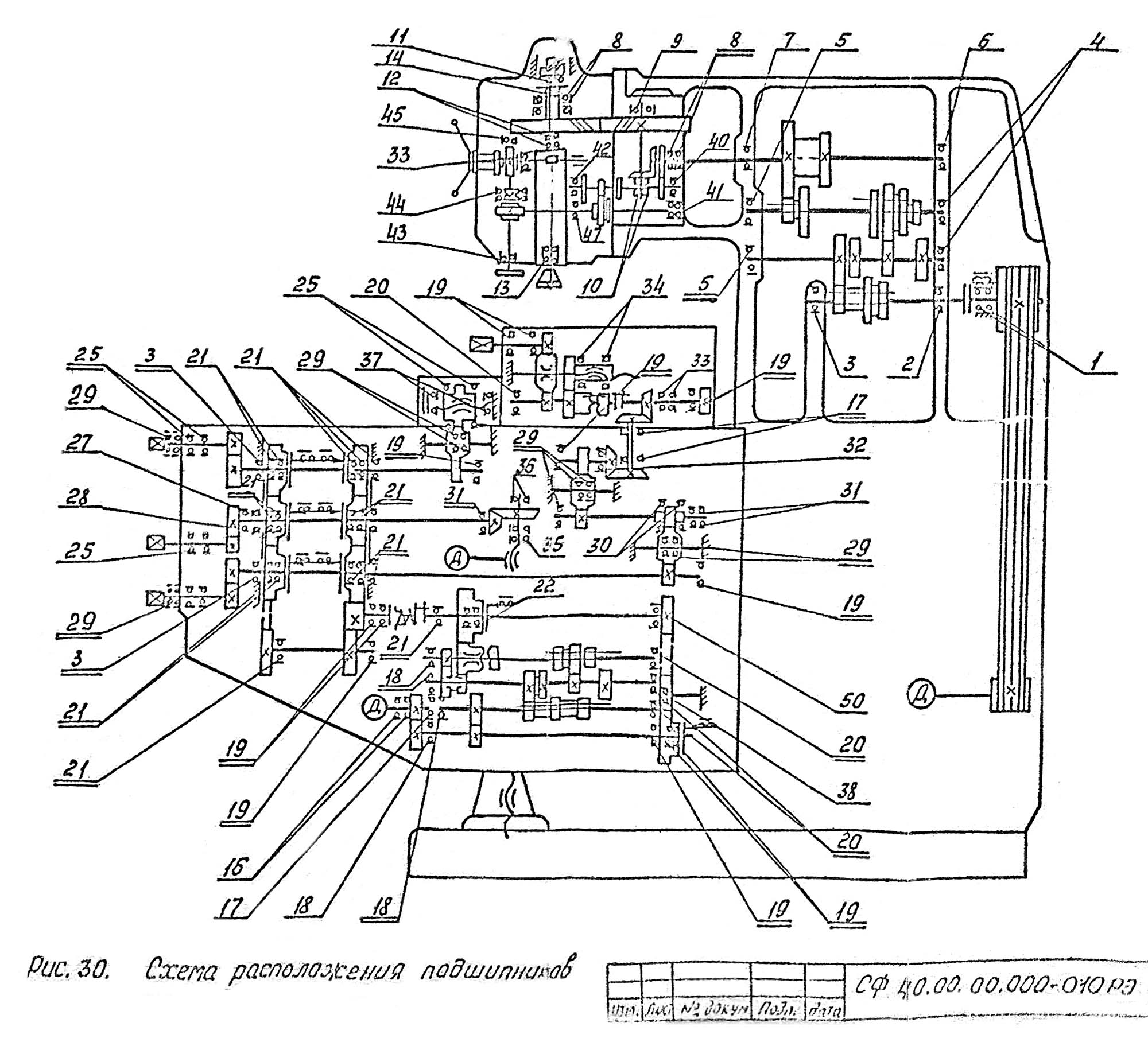 2. Кінематична схема консольно-фрезерного верстата СФ-40. Дивитись у збільшеному масштабі