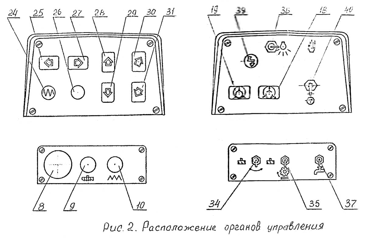 Кнопками одновременно можно осуществлять рух стола в 2-х—3-х направлениях, а также толчковый режим (рух стола только при нажатой кнопке).