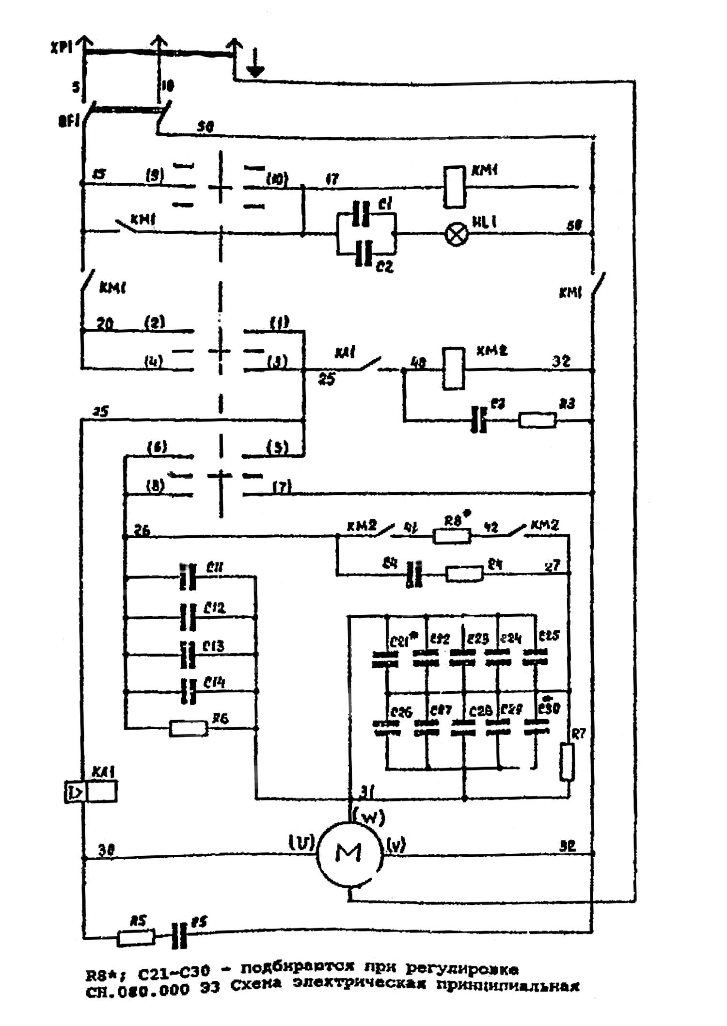 Схема електрична токарно-гвинторізного верстата Умілець. Дивитись у збільшеному масштабі