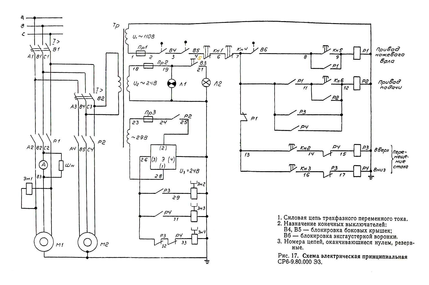 Схема електрична принципова рейсмусового верстата СР 6-9 Рис. 17