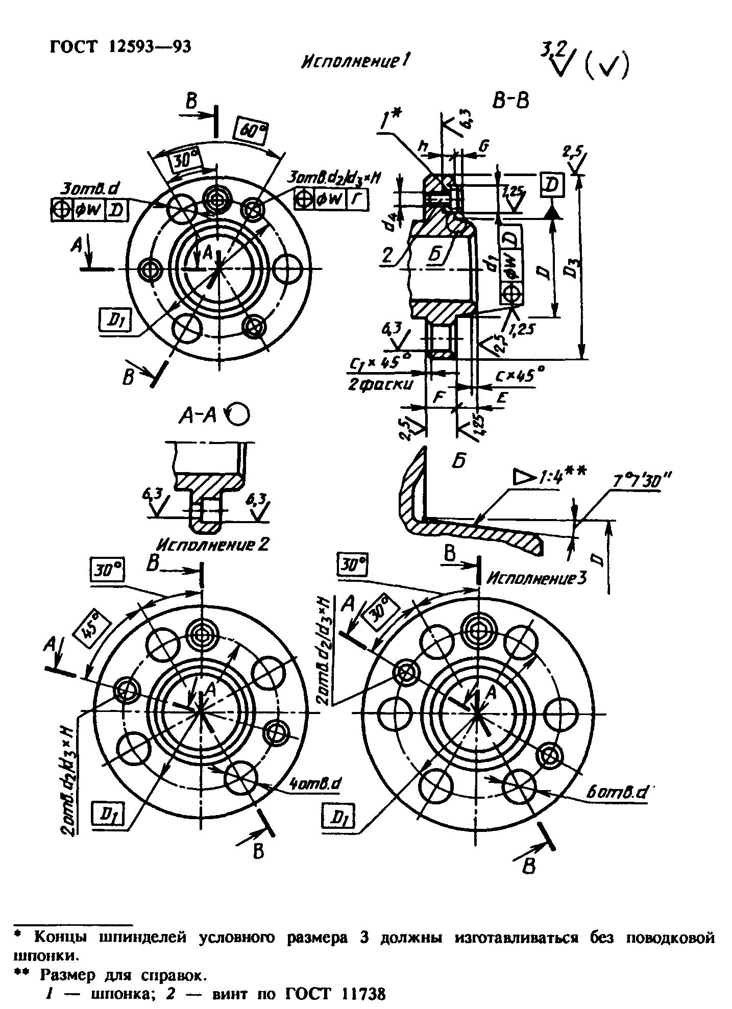 3. ГОСТ 12593 - Концы шпинделей фланцевые под поворотную шайбу і фланцы зажимных устройств
