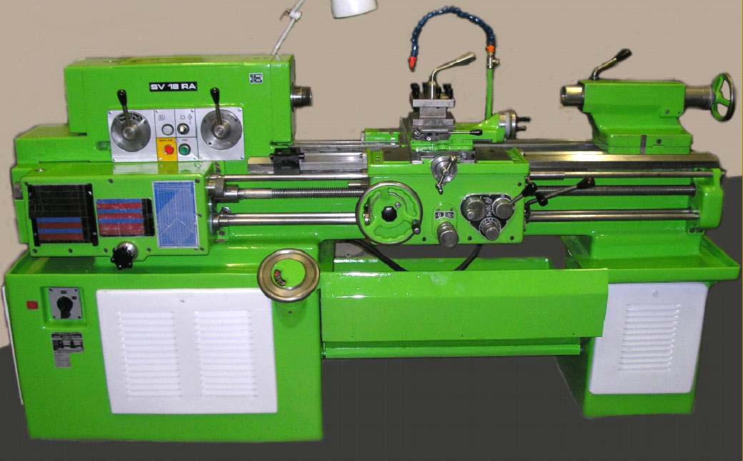 Верстат інструментальний TOS SV18RA , дуже якісний, точний, довговічний та зручний у роботі. Дуже цінувалися та цінуються працюючими на них. Добре комплектувалися. Обов'язково на кожен комплект цанг від 3мм до 25мм + перехідний стакан. Люнети, два патрони (трикулачковий самоцентрований, чотирикулачковий з роздільною зведенням + планшайба з пазами.....). Гітара дозволяє нарізати всі види різьблення. Запасні шестерні висять у відсіку гітари на гачках. Шпиндельні опори – бронзові. Маслостанція працює від окремого мотора і включається разом із верстатом. Електромеханічне включення. Привід від коробки швидкостей на шпиндель – шкіряним, широким (близько 100мм) ременем. Це дозволяє швидко гальмувати шпиндель реверсом, чим користуються практично всі токарі (шкіра злегка прослизає при реверсуванні).
