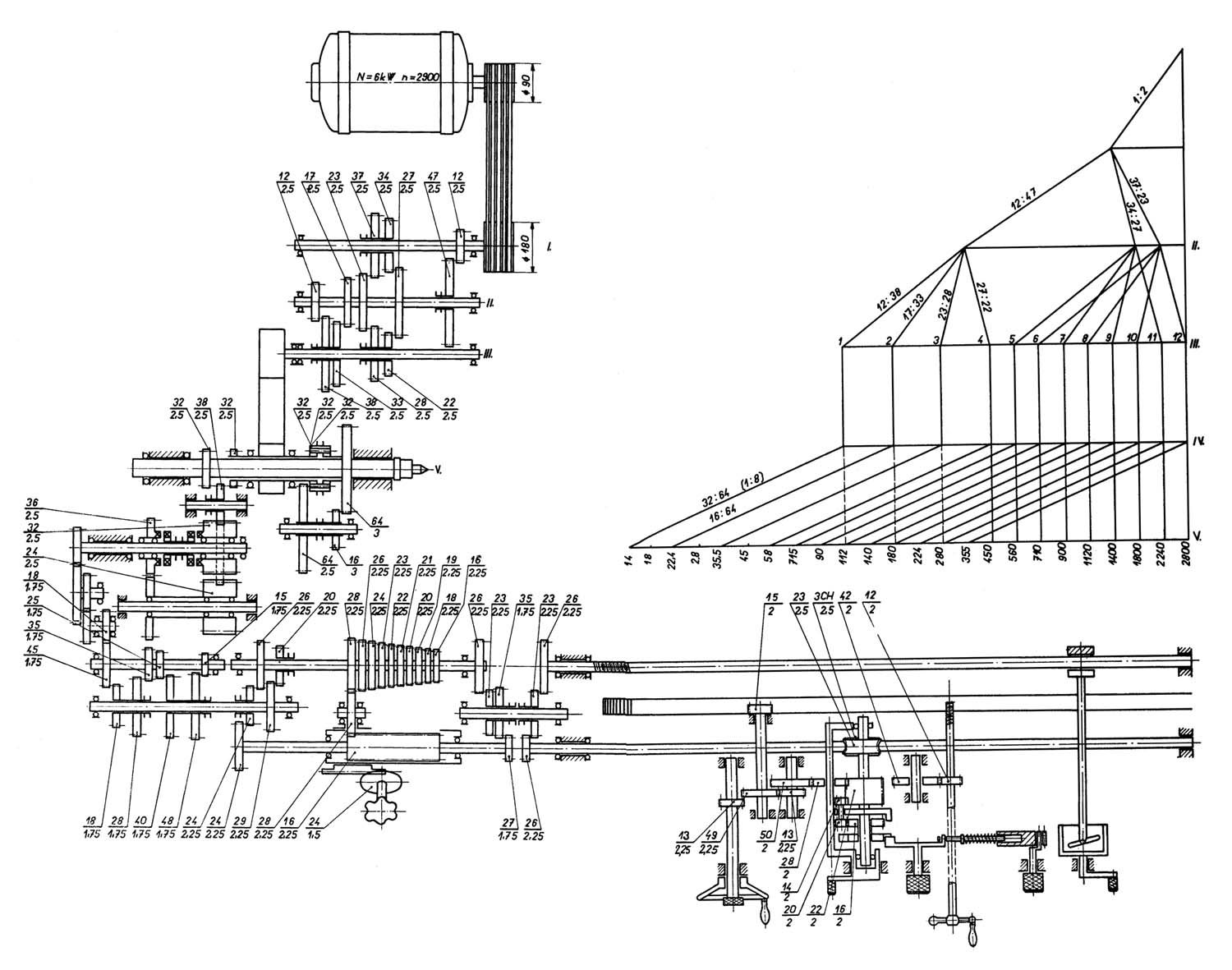Кінематична схема токарно-гвинторізного верстата sv18ra