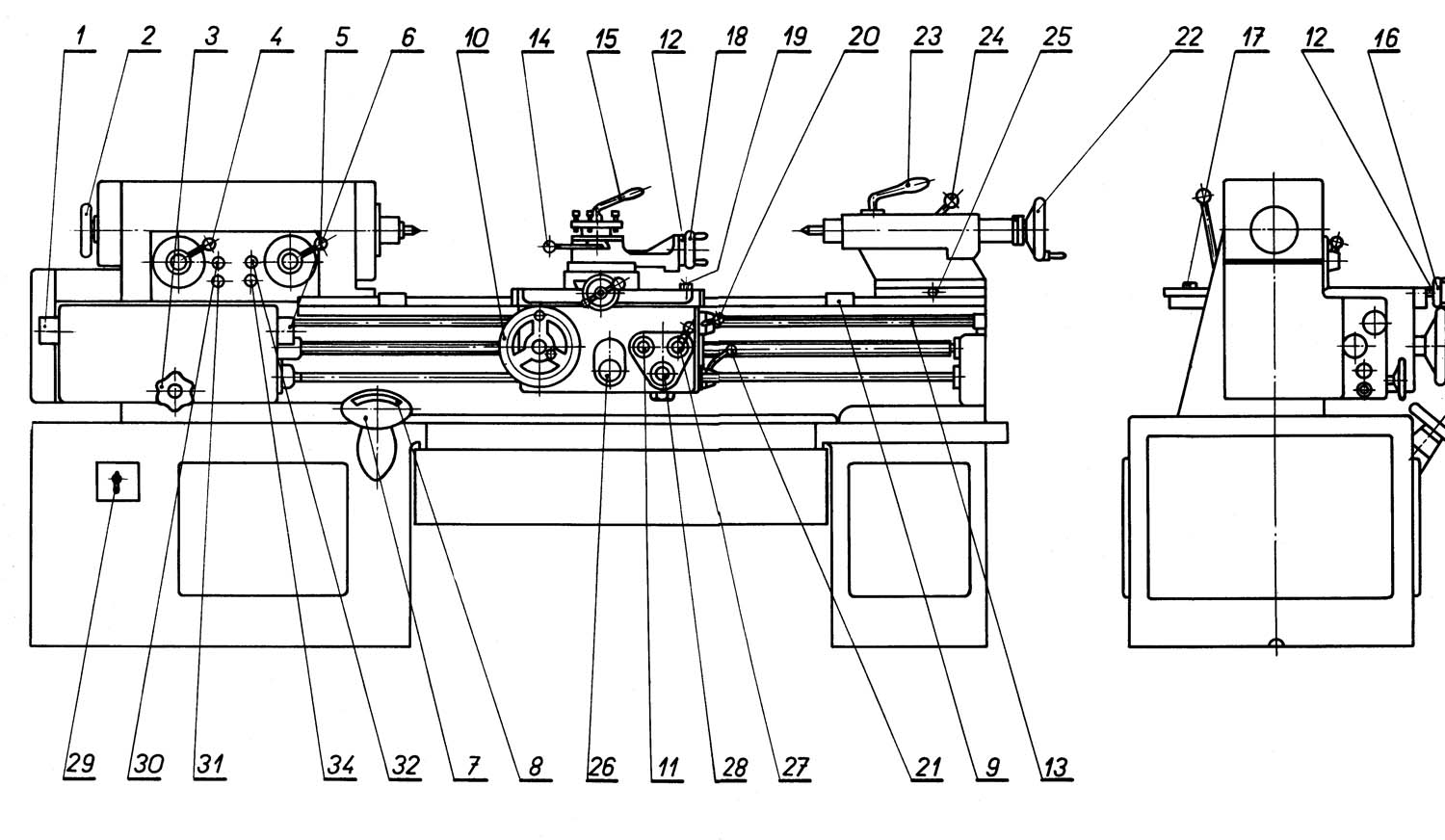 Розташування органів керування токарно-гвинторізним верстатом sv18ra