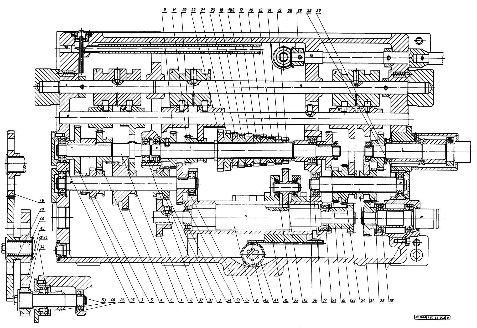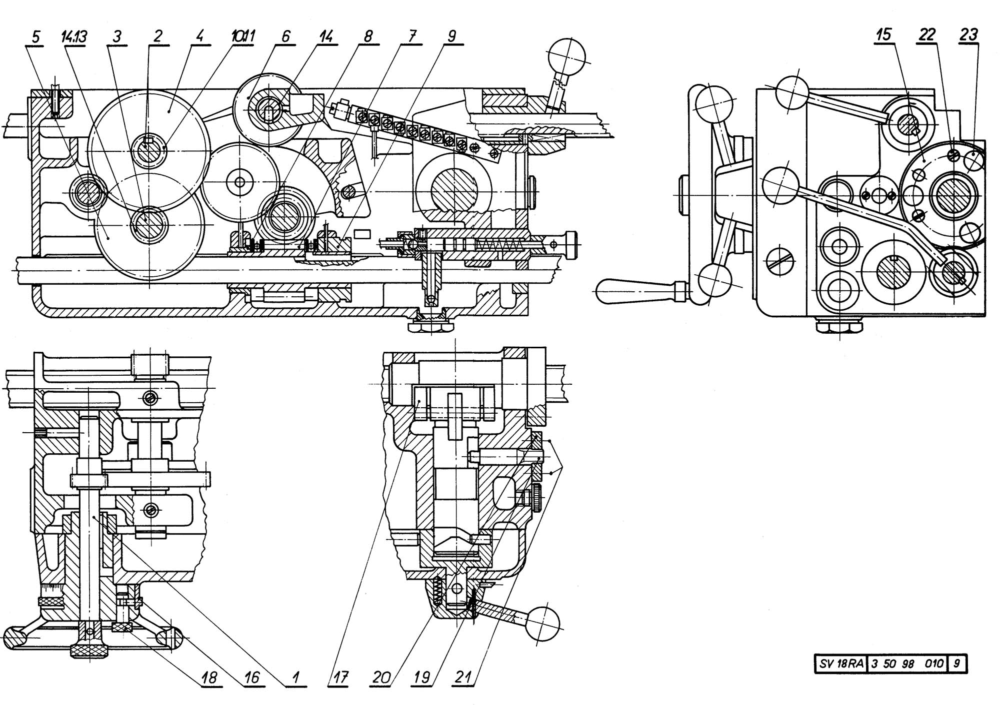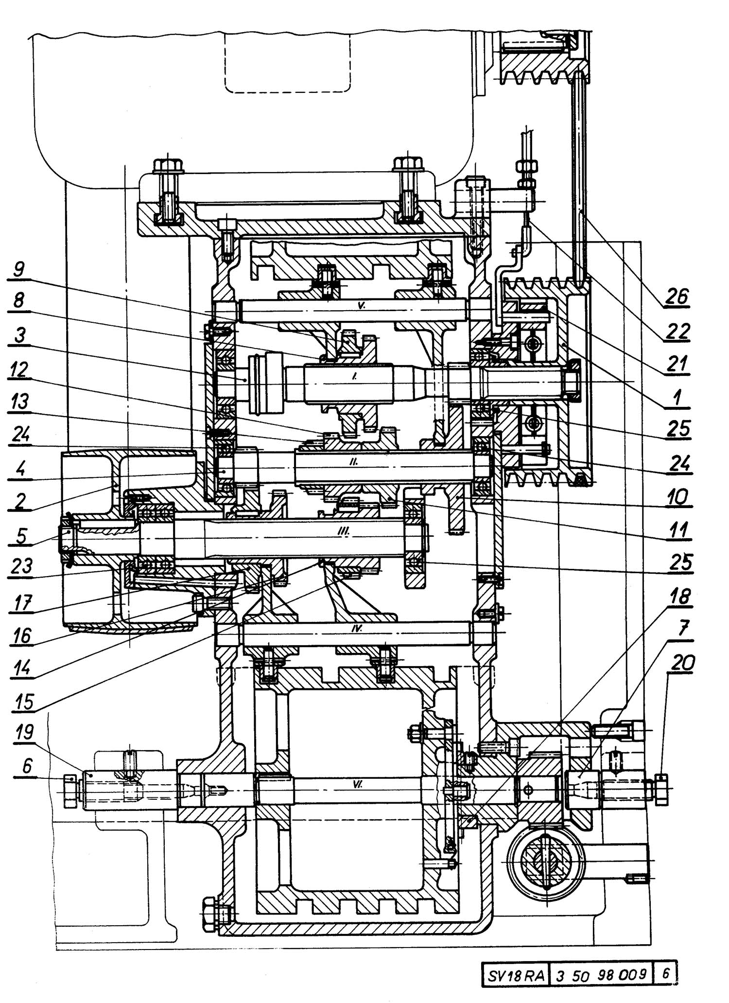 Коробка швидкостей токарно-гвинторізного верстата sv18ra. Дивитись у збільшеному масштабі