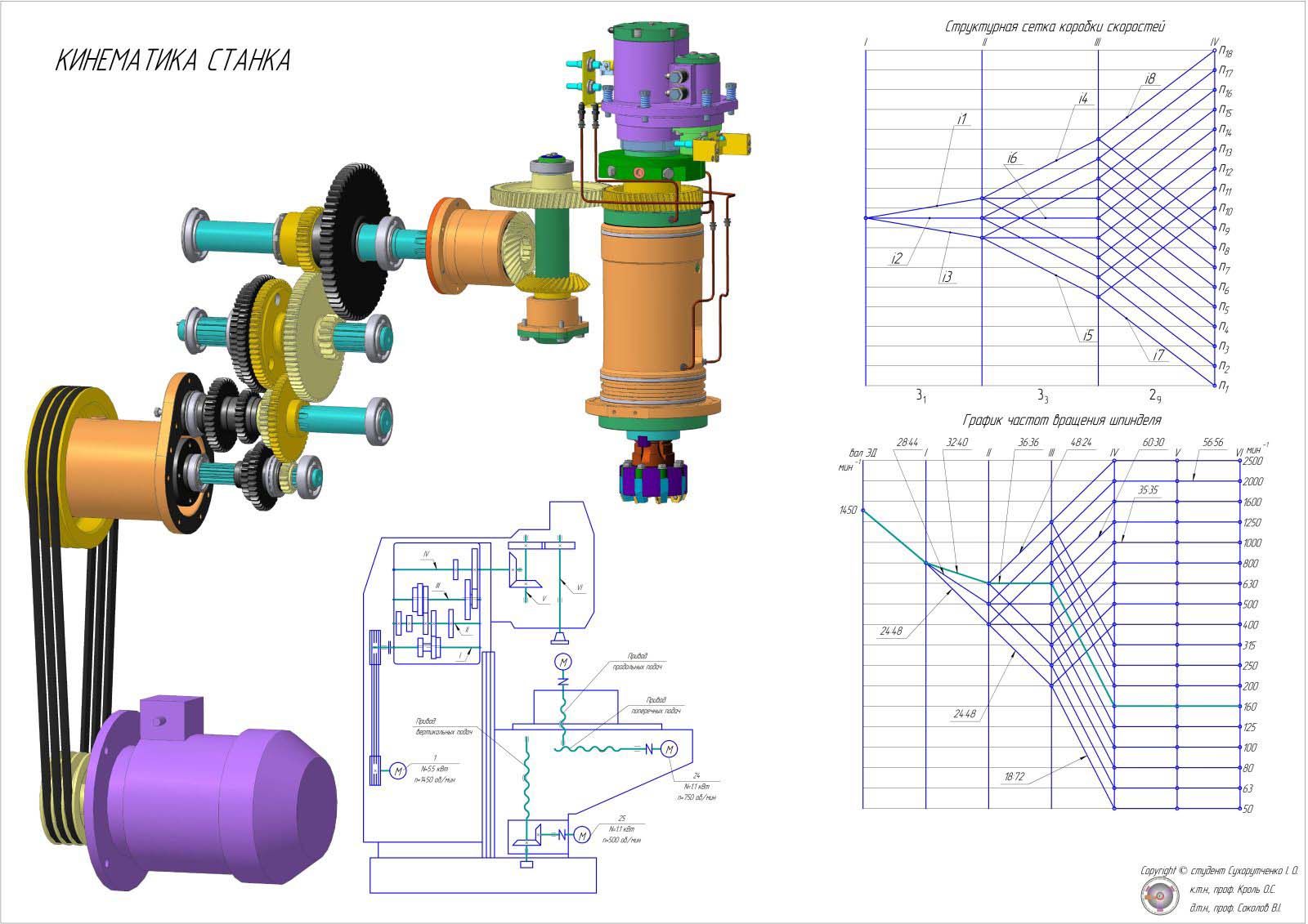 Кінематична схема фрезерного верстата СВМ1Ф4