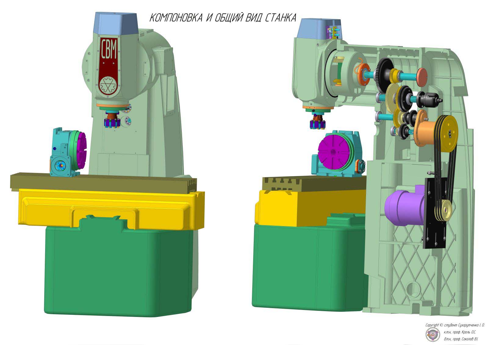 Компоновка і общий вигляд фрезерного верстата СВМ1Ф4
