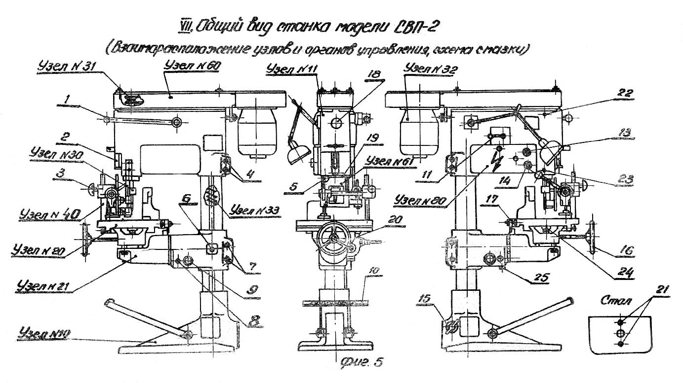 Розташування складових частин сверлильно-пазовального верстата СВП-2. Дивитись у збільшеному масштабі