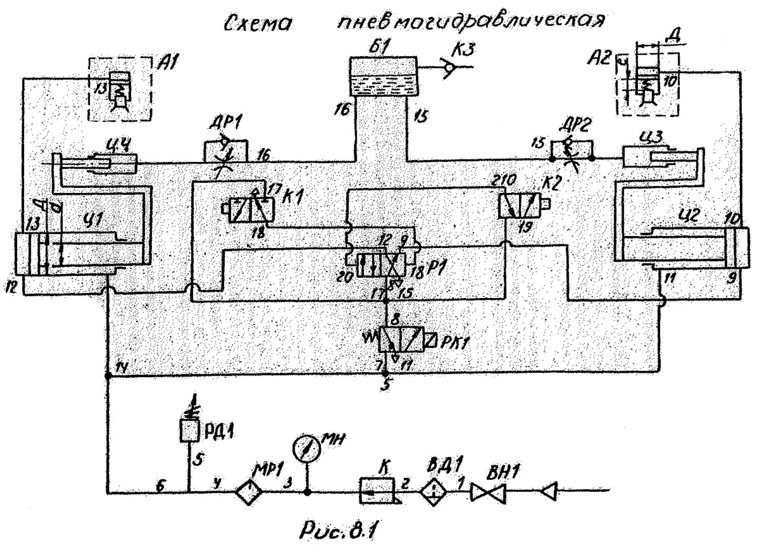 Пневмогідравлическая схема сверлильно-пазовального верстата СВПГ-2А