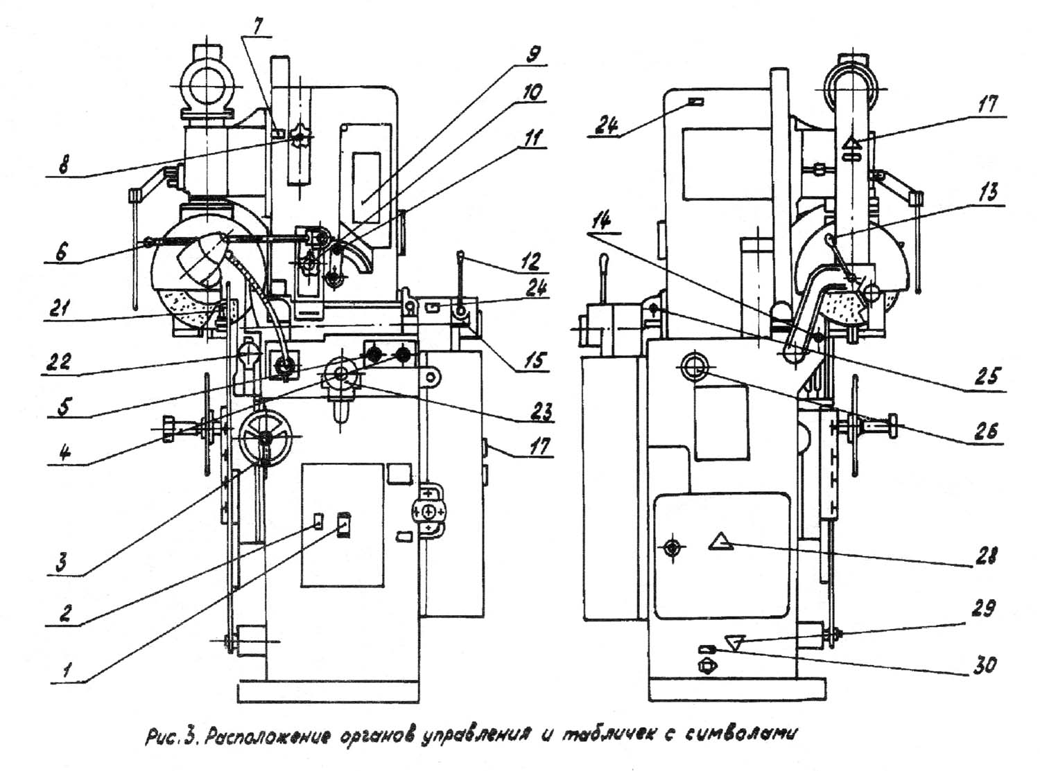 рукоятку 12 поставить в нейтральное положение таким образом, чтобы шлифовальный круг был в крайнем нижнем положении, нажать кнопку 5 «Стоп»;