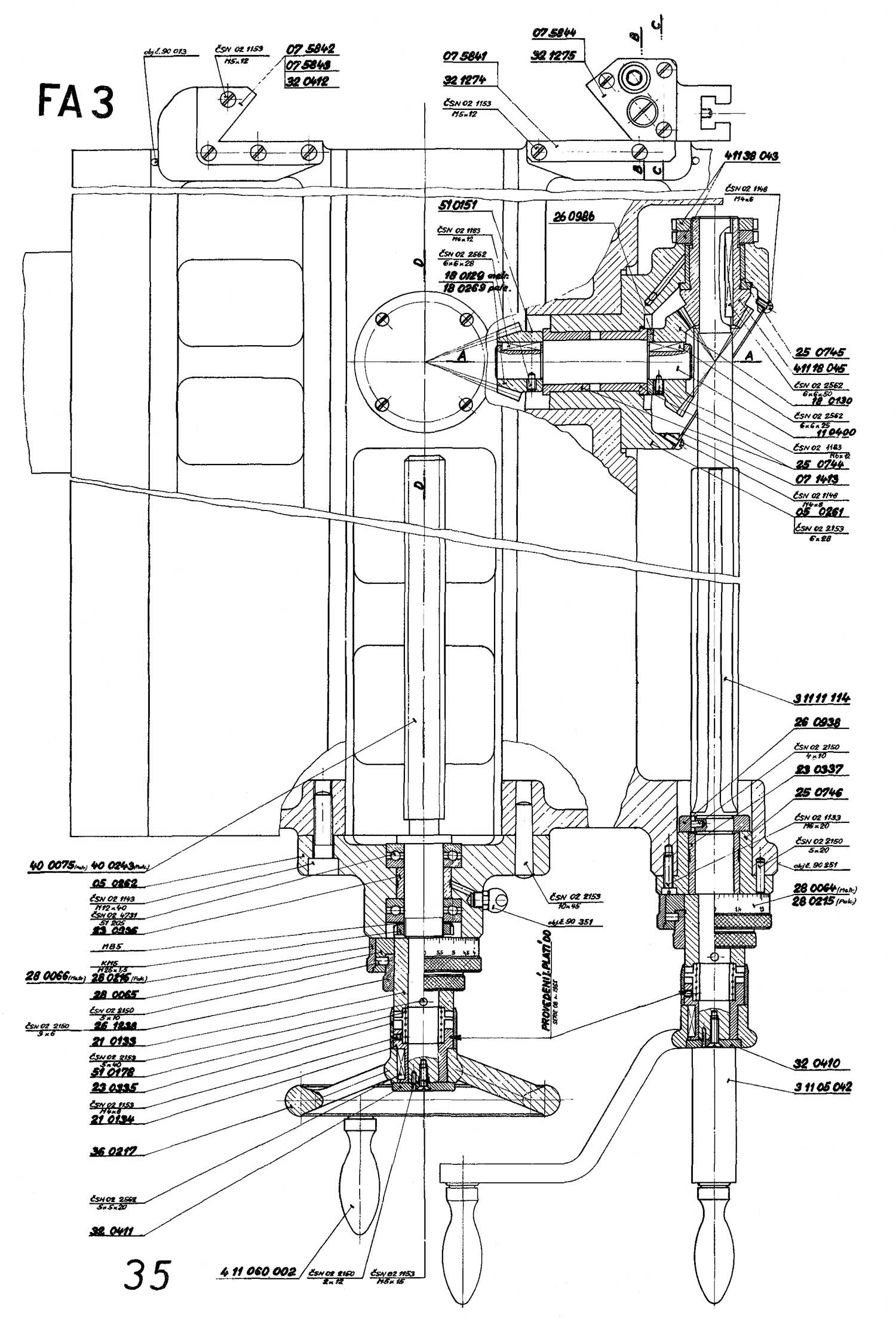 Список основних вузлів і органів керування верстатом FA3v (рис. 10, 11)