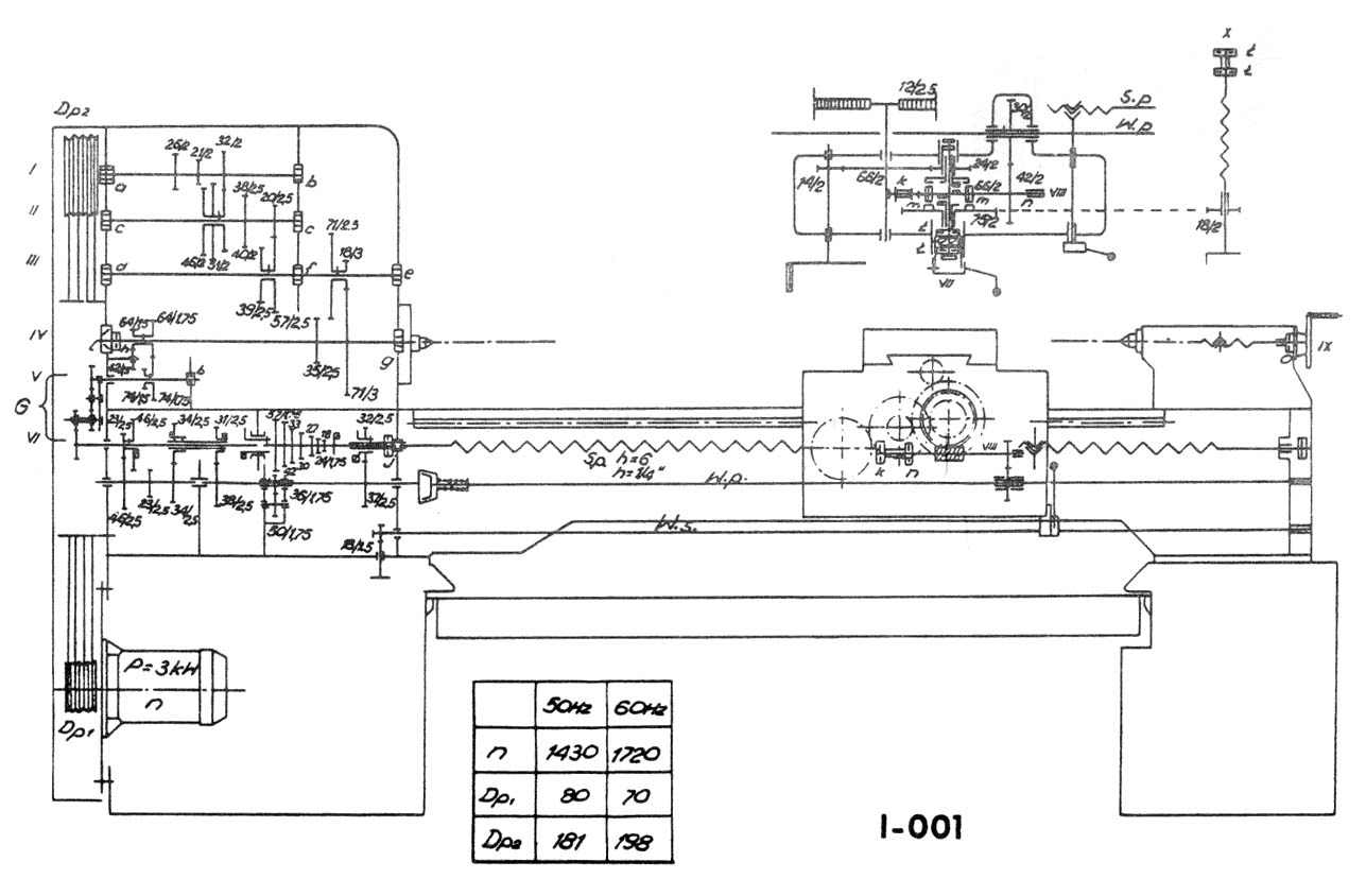 Кінематична схема токарно-гвинторізного верстата TUE-40